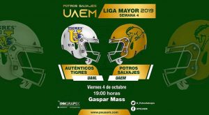 Elpidio Hernández Villanueva Toluca, México; 4 de octubre de 2019. El equipo de futbol americano Potros Salvajes de la
