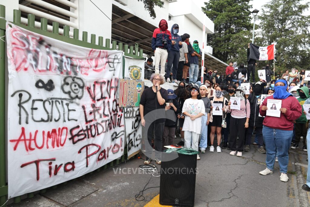 Los alumnos paristas le recordaron a la directora que no debió decir los nombres de los alumnos., que han registrado la presencia de camionetas sin placas rondando la facultad, así como patrullas que los vigilan.