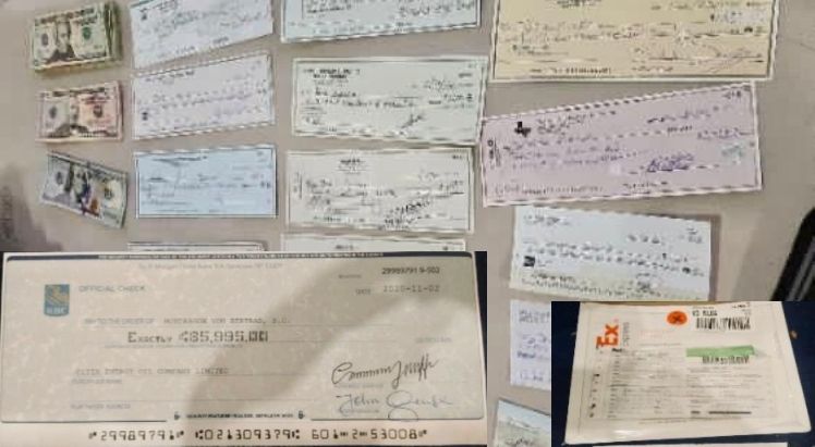 En el mismo punto se decomisó otro cheque proveniente de Estados Unidos con un valor de 353 mil 888 (7 millones 323 mil pesos aproximadamente).