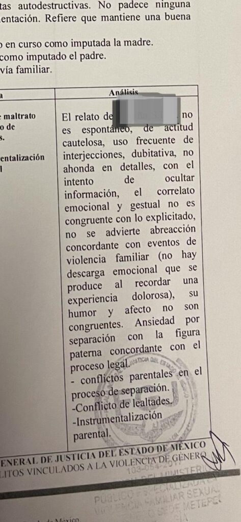 “Entonces, cuando se desahoga esa prueba en audiencia la paidopsiquiatra dice que ‘es violencia sexual cuando un papá toca a menores, y es violencia sexual cuando ese papá le hace creer algo a los niños en ese rubro para perjudicar a la mamá. La jueza de ese momento emite un auto, que en la página 10 dice que Jaime Amado está violentando sexualmente a sus hijas, manipulándolas con un relato así”, precisa Laura.